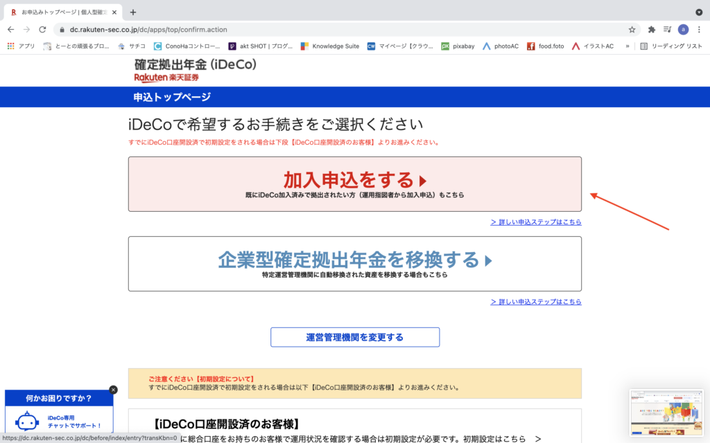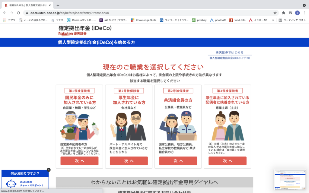 銀行や証券会社での確定拠出年金用の口座開設です。