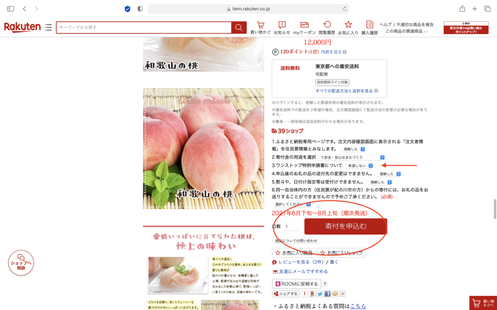 試しにおすすめの「和歌山県紀の川市」の桃に進んでみましょう。