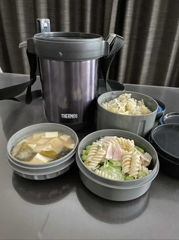 味噌汁とご飯とサラダを詰めるだけのシンプルな内容です。